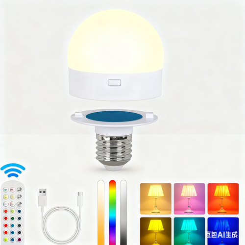 E27 Rechargeable Light Bulb with Remote and Timer, Battery Backup Bulb for Sconces and Lamps, Magnetic Bulbs for Non-Hardwired Fixture, 3 Color Temperatures + 15 RGB Colors, Dimmable, 1 Pack, Smart LED Light