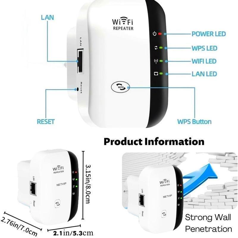 【Dual-Function Support】Wi-Fi Extender features Ethernet Ports and supports both Repeater and AP modes. Easily convert a wired Internet connection into a wireless access point. Most home users can set it up in one of two ways: Range Extender (wirelessly connects to your existing network and boosts the signal) or Access Point (connects via Ethernet and broadcasts the wireless signal). 【Broad Compatibility】Compatible with any wireless network devices that adhere to the 802.11N/B/G standard, including routers, modems, and Wi-Fi devices such as smartphones, tablets, laptops, and smart TVs. Ensures seamless integration with your existing network setup. 【Ultra Signal Reach】Delivers high-speed and long-range coverage to enhance wireless signals across all WLAN networks. Effectively eliminates Wi-Fi dead zones and creates a robust signal with a transmission rate of up to 300Mbps. Enjoy seamless online gaming, video conferencing, and 4K HD video streaming anytime, anywhere in your home. 【Secure Network Space】Maximizes network security to safeguard your Wi-Fi connection. Effectively prevents unauthorized access, protects your important data, and avoids Wi-Fi interference and privacy issues. Supports advanced wireless security protocols: WPA/WPA2. Ideal for use in homes, offices, and while traveling. 【Effortless Setup】One-touch WPS setup connects your device in under a minute. The wall-plug design ensures portability and ease of use. Alternatively, configure settings via a web browser on your smartphone, tablet, or PC. Follow the user manual for a hassle-free installation without complex technical steps.