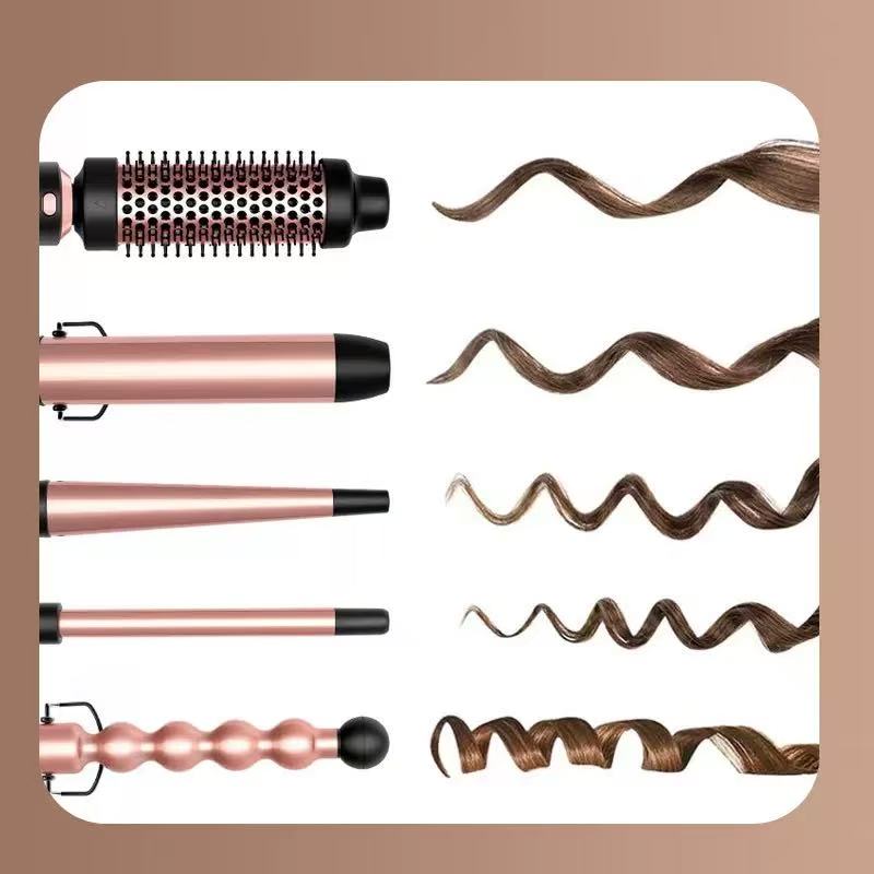 5 in 1 Curling Wand Set, Multi Hair Curler Set with Thermal Brush and 4 Interchangeable Ceramic Curling Tongs(13-32 mm), Instant Heat Up Curling Iron (Rose Gold)