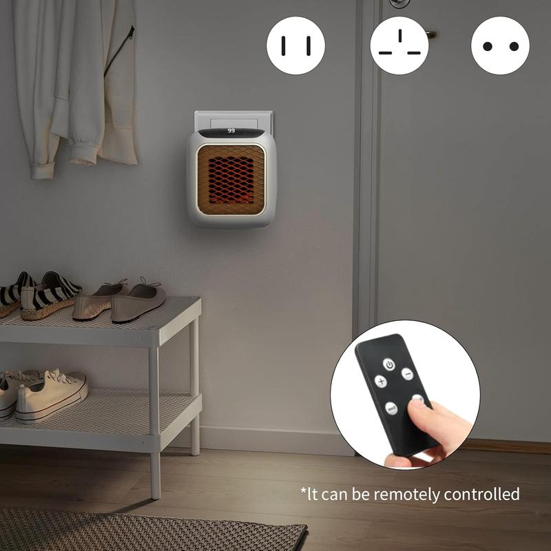 Mini Portable: A space-saving wall socket heater that can be plugged directly into the wall, taking up no space at all, only 14*13*8cm in size, suitable for travel or home use, turning a cold space into a warm and comfortable space.