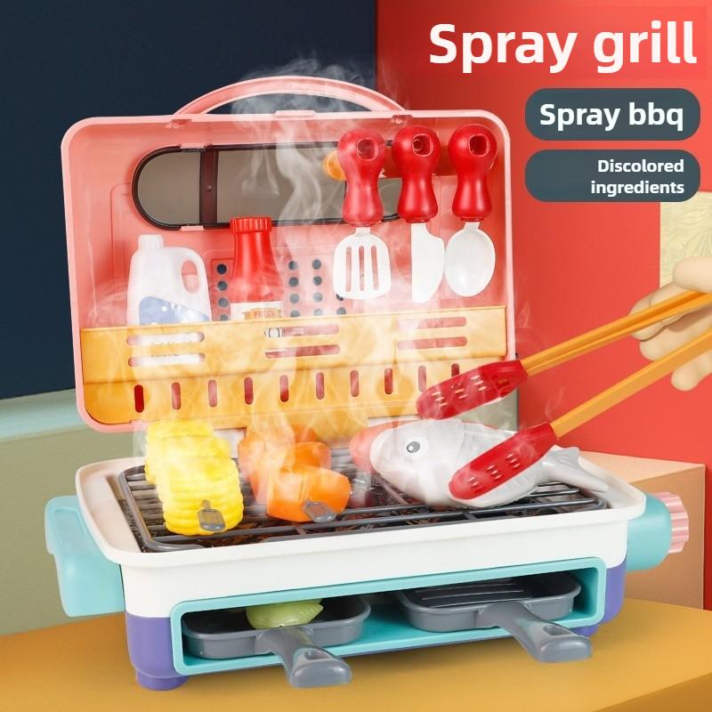 BBQ Grill Toy Set and Fryer Set for Kids - Color Changing Pretend Play, Little Chef Play, Interactive BBQ Toy Set,Gift,Christmas