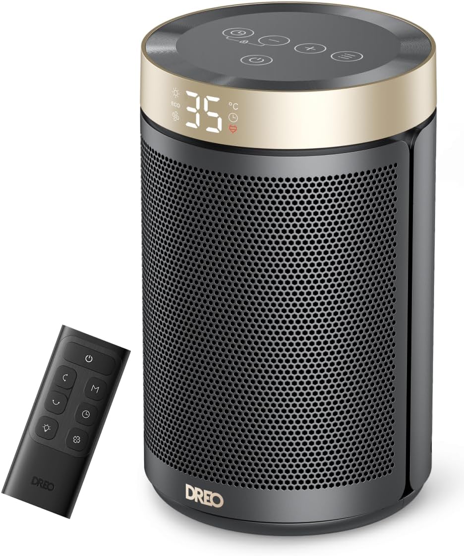 Dreo Electric Heater, 1500W Energy Efficient Space Room Heater, Upgrade Remote Portable Ceramic Fan Heaters, Thermostat, 3 Modes 12H Timer, Overheat & Tip Over Protection, for Bedroom, Atom 316, Gold