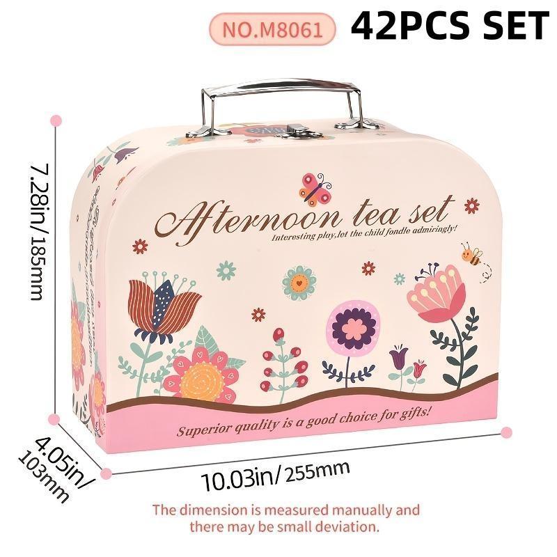 【Colorful Design】: Ideal for children aged 3-8, this tea party play set features a vibrant combination of strong white and baby pink colors that will captivate your little one's imagination. 【Realistic Play】: The set includes 42 pieces of high-quality, child-friendly ABS materials that mimic the appearance and feel of real-life tea party items. 【Includes Everything Needed】: The set comes with everything needed to start a tea party, including teaware, desserts, and serving accessories. 【Safe and Durable】: Made in China with strict adherence to safety standards, this tea party play set is designed to withstand countless hours of playtime.