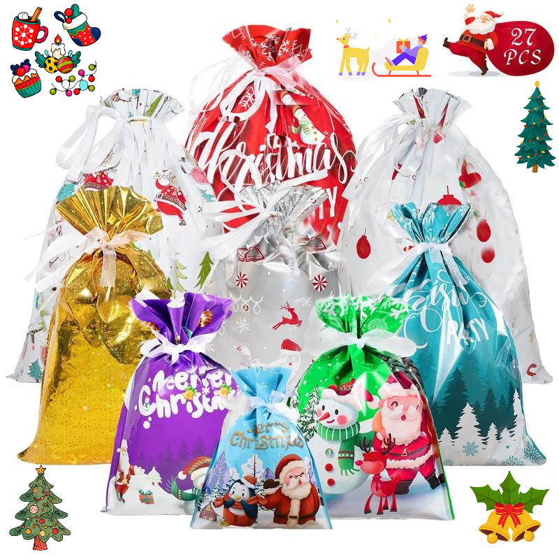 Holiday Drawstring Gift Bag Packaging , 27 Christmas Foil Gift Bags for Christmas Gift Party Favors,Christmas Gift