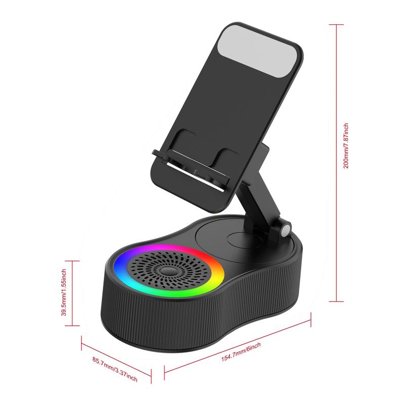 Wireless Induction Audio Bluetooth Speaker, 5in1 Phone Holder, Emergency Rechargeable (4000mAh) with Colorful Ambient Light Foldable for Tablet iPhone Android, Gifts for Men Women,Gift